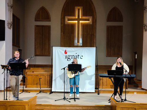 Ignite is a modern worship service that can fit the style of the contemporary listener. The band plays contemporary Christian and worship music.